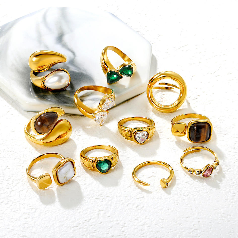 แหวนแฟชั่นสแตนเลสดีไซน์เปิดรูปทรงเรขาคณิตไม่สม่ำเสมอสำหรับผู้หญิงของขวัญเครื่องประดับ