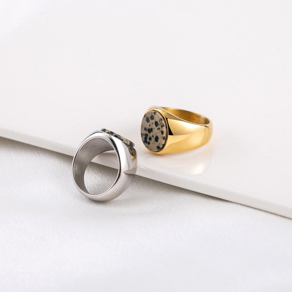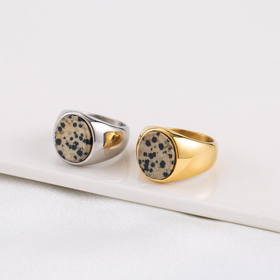 แหวนแฟชั่น ไทเทเนียมสตีล ชุบทอง 18K ประดับหินลายจุด หน้ากว้าง สำหรับทุกเพศ ของขวัญเครื่องประดับ