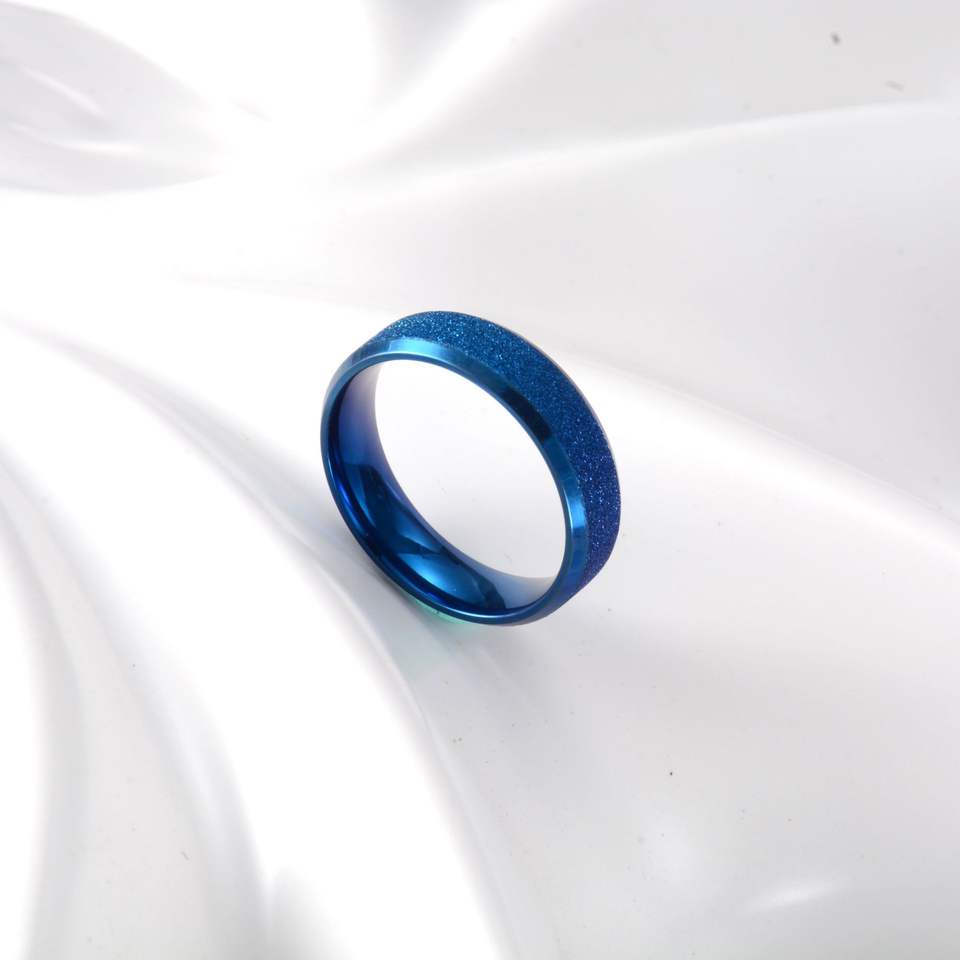 Fashion Rings Titanium Steel Blue Black Steel Gold Color Pearl Sand Finish Unisex Couple Gift Jewelry
