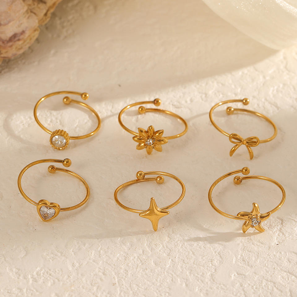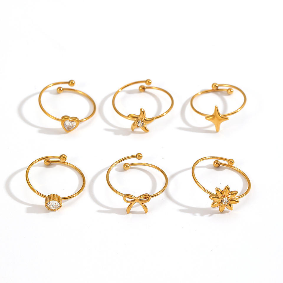 แหวนแฟชั่นผู้หญิง ปรับขนาดได้ สีทอง ลายดาว หัวใจ ดอกไม้ โบว์ ชุดแหวน ของขวัญ เครื่องประดับ ดีไซน์เรขาคณิต