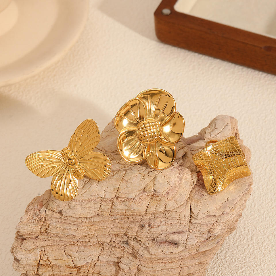 แหวนแฟชั่นผู้หญิงชุบทองผีเสื้อดอกไม้การออกแบบทางเรขาคณิตของขวัญเครื่องประดับ
