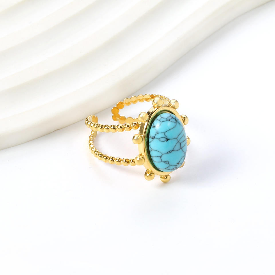 แหวนแฟชั่นผู้หญิง ชุบทอง ประดับพลอยทรงรี ดีไซน์ขอบแบบ Bezel ปรับขนาดได้ ของขวัญเครื่องประดับ