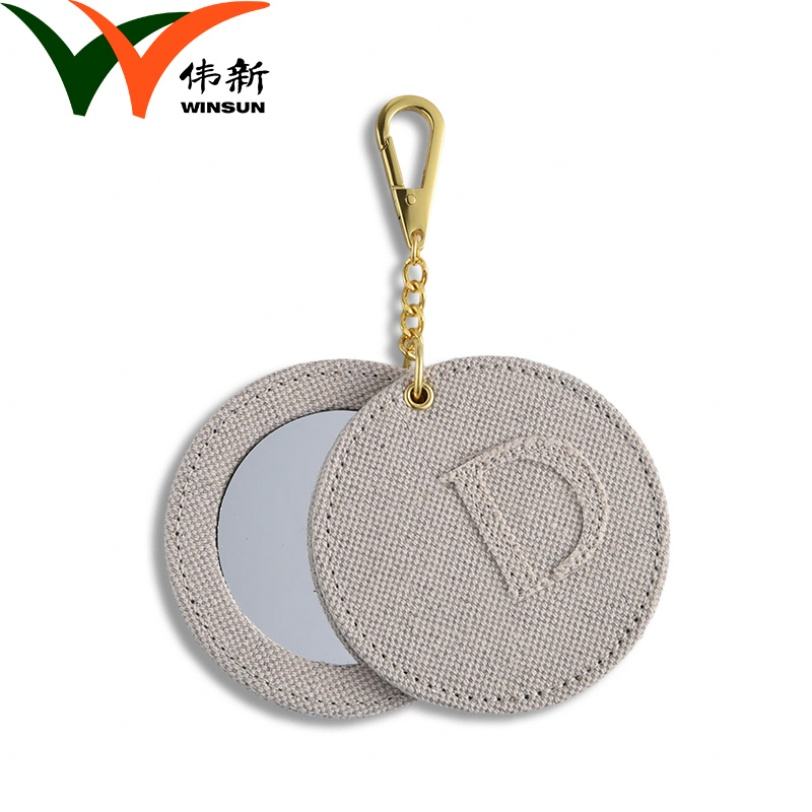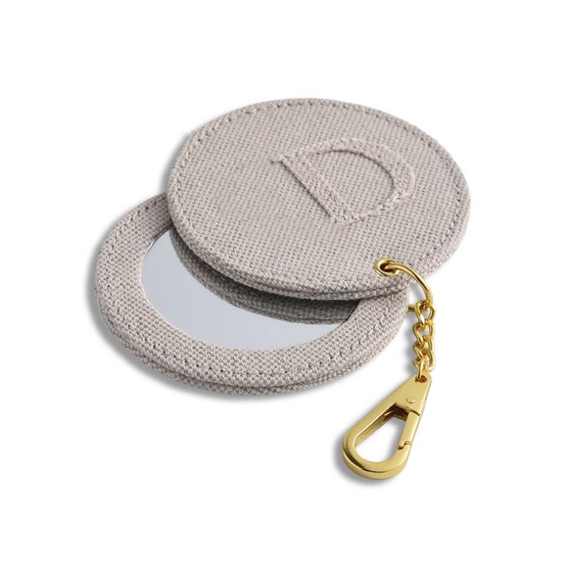 กระจกพกพาทรงกลมแฟชั่น ผ้าแคนวาสสีเทา พร้อมพวงกุญแจ