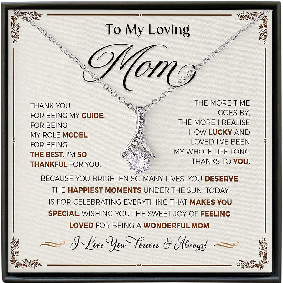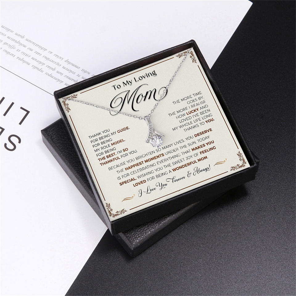 สร้อยคอจี้เพทายทรงกลมแฟชั่นพร้อมกล่องของขวัญและการ์ดข้อความของขวัญวันแม่ของขวัญสำหรับคุณแม่ที่รักของฉัน
