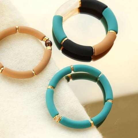 กำไลข้อมือแฟชั่นเรซินรูปทรงครึ่งวงกลมกำไลข้อมือสตรีทำมือแบบวางซ้อนกันได้สีน้ำตาลเบจ