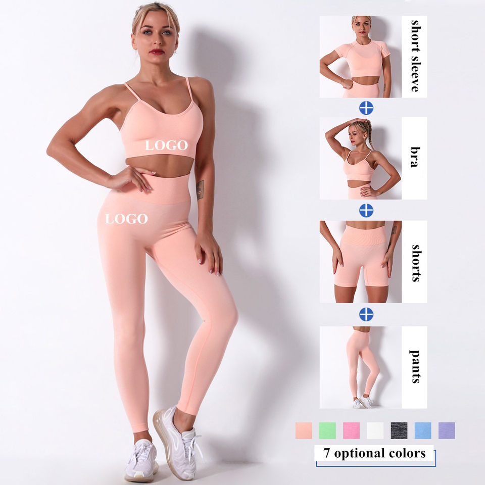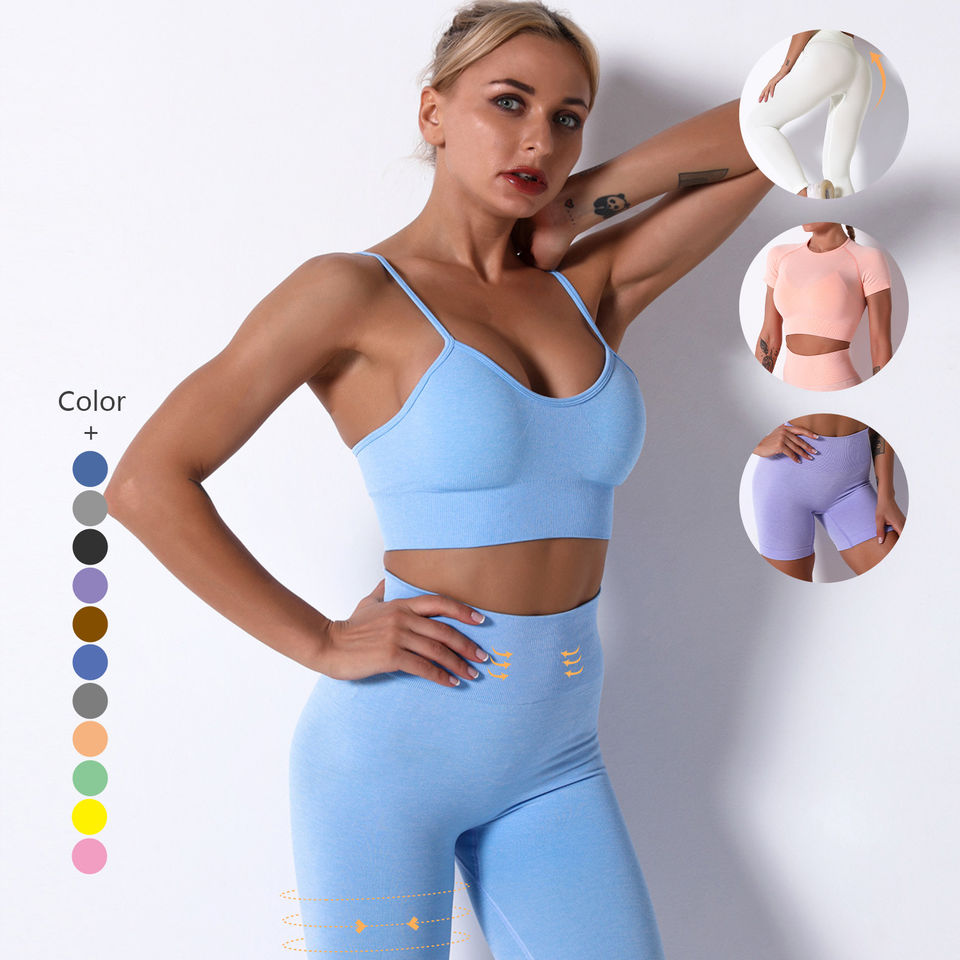 ชุดโยคะแฟชั่นเซ็กซี่ของผู้หญิงชุด2ชิ้นแห้งเร็วระบายอากาศได้ดีชุดออกกำลังกายยิมแบบรัดรูปสีพื้น