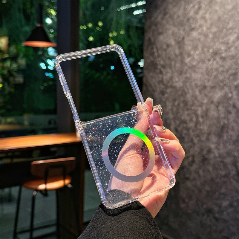 เคสโทรศัพท์แม่เหล็กแบบแข็งแวววาวระยิบระยับเลเซอร์กันกระแทกสำหรับ Samsung Galaxy Z flip 7 6