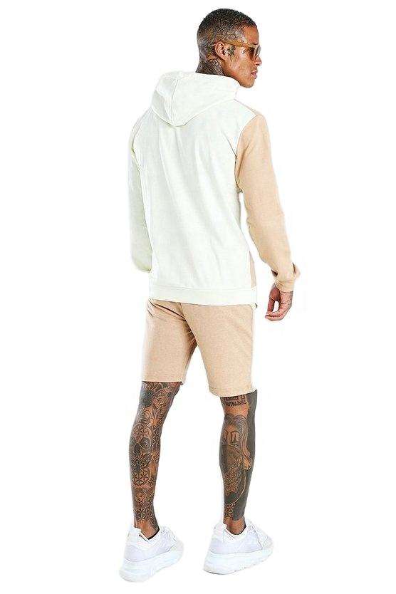 เซ็ตชุดกางเกงขาสั้นและเสื้อมีฮู้ดแฟชั่นสำหรับผู้ชายชุดกางเกงขาสั้นและเสื้อสเวตเตอร์มีฮู้ดโลโก้แบบกำหนดเอง