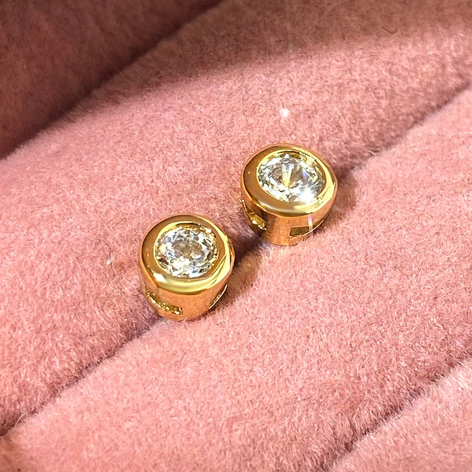 ต่างหูแบบติดหูทรงกลมเล็ก ดีไซน์เรียบง่าย แฟชั่น ชุบทอง 18K ประดับเพชรซิคอน กันน้ำ สำหรับผู้หญิง