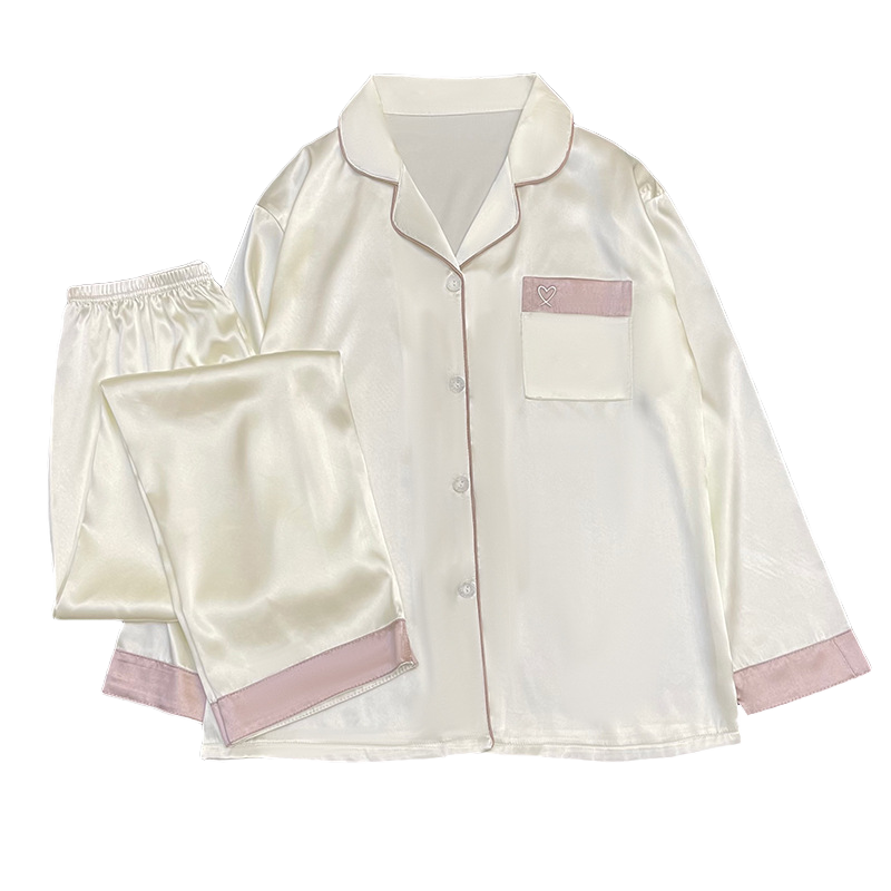 ชุดนอนผ้าซาตินเนื้อนุ่ม ดีไซน์เรียบหรู ยืดหยุ่นได้ที่เอว เหมาะสำหรับฤดูใบไม้ผลิ ฤดูร้อน ฤดูใบไม้ร่วง สีพื้นเรียบง่าย สำหรับผู้หญิง พร้อมโลโก้ด้านหน้า