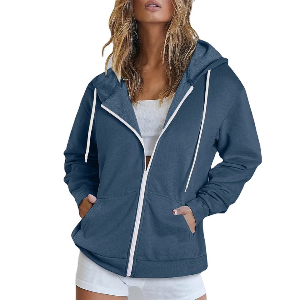 เสื้อฮู้ดมีเชือกผูกแบบมีซิป แขนยาว สีพื้น แฟชั่น