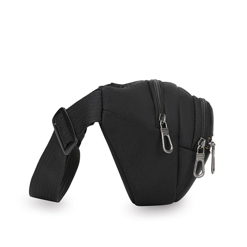 กระเป๋าคาดเอวแฟชั่นสไตล์สปอร์ตสำหรับผู้ชาย สีดำ ทำจากผ้าอ๊อกซ์ฟอร์ด กันน้ำ มีช่องใส่ของหลายช่อง พร้อมซิปปิด