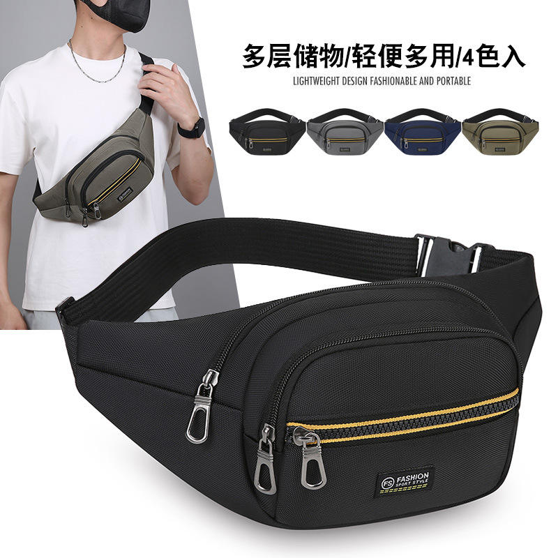 กระเป๋าคาดเอวแฟชั่นสไตล์สปอร์ตสำหรับผู้ชาย ผ้าอ็อกซ์ฟอร์ด กันน้ำ สีดำ สีเทา สีเขียวทหาร สีน้ำเงินเข้ม ฤดูใบไม้ผลิ 2025 น้ำหนักเบาพิเศษ