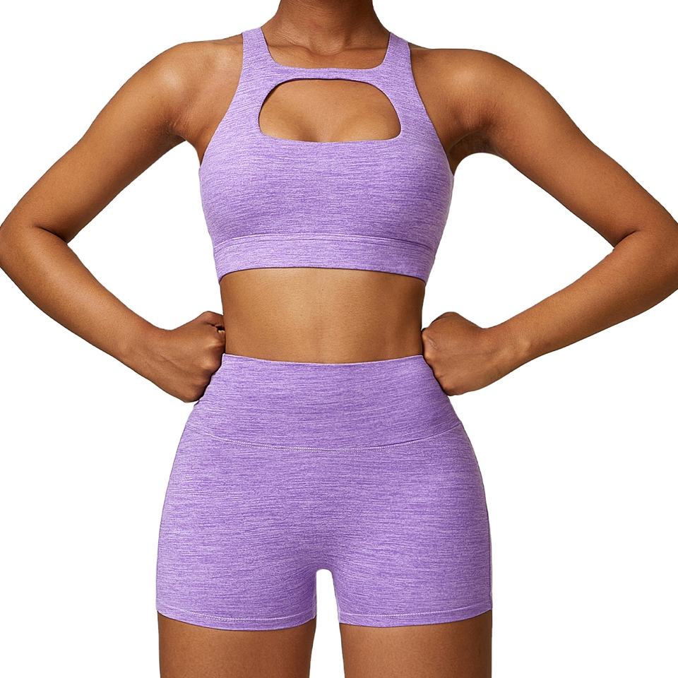 ชุดกีฬาแฟชั่นชุดเล่นโยคะฟิตเนสยิมชุดสปอร์ตบราและกางเกงขาสั้นชุดกีฬาแบบเซ็กซี่สุดหรูสำหรับฤดูใบไม้ร่วง