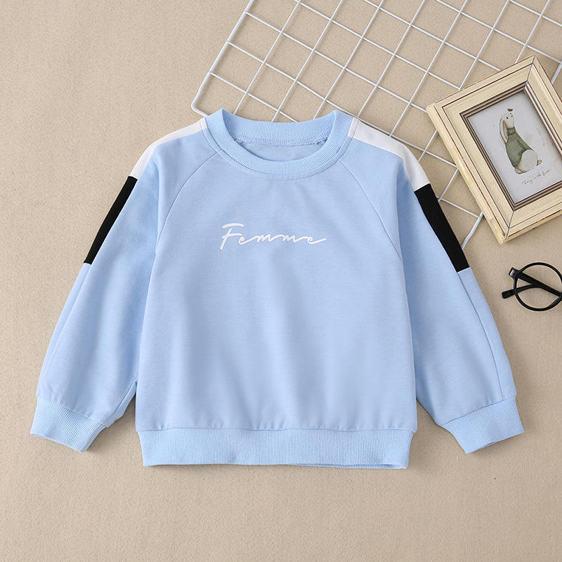 ชุดกีฬาแฟชั่นสำหรับเด็กผู้ชาย ชุดลำลองสีสันสดใส เสื้อแขนยาวสีตัดต่อ และกางเกงจ็อกกิ้ง