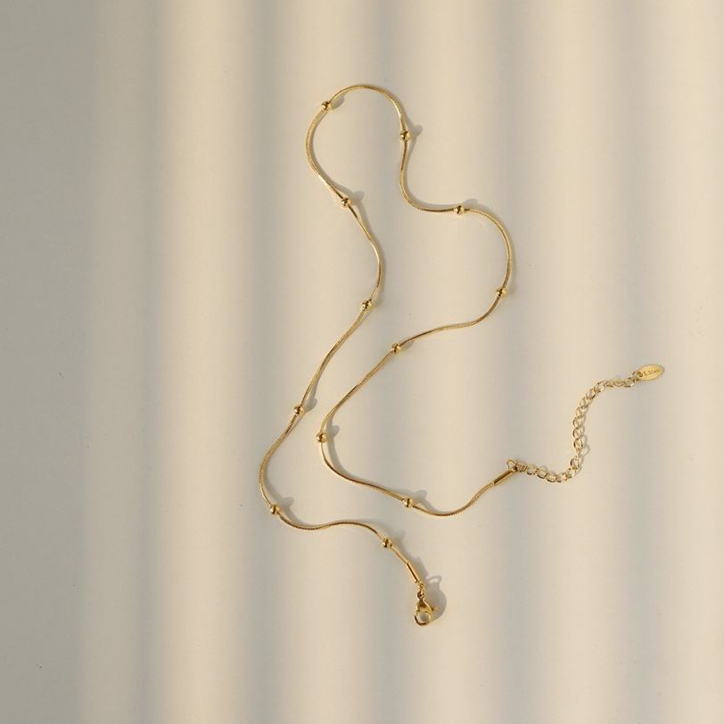 สร้อยคอแฟชั่นสแตนเลสทรงกลมลายกระดูกงู พร้อมจี้คลิปและลูกปัดแบบซ้อน