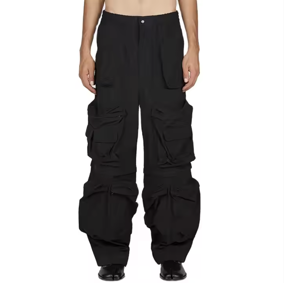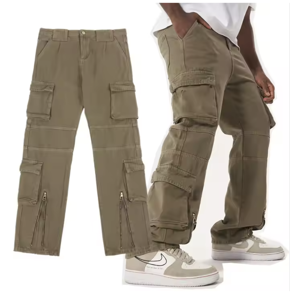กางเกงคาร์โก้ผ้าไนลอน/คอตตอนแบบวินเทจ ล้างทำความสะอาดได้ เป็นมิตรกับสิ่งแวดล้อม สำหรับผู้ชาย ปักโลโก้ตามสั่ง ดีไซน์ตะเข็บเย็บต่อกัน ตกแต่งหมุด สไตล์สตรีทแฟชั่น