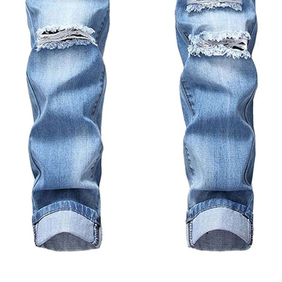 Fashion Streetwear Men's Jeans Blue Color 100% Cotton Breathable Windproof Autumn Summer Slim Fit Punk Style OEM Service