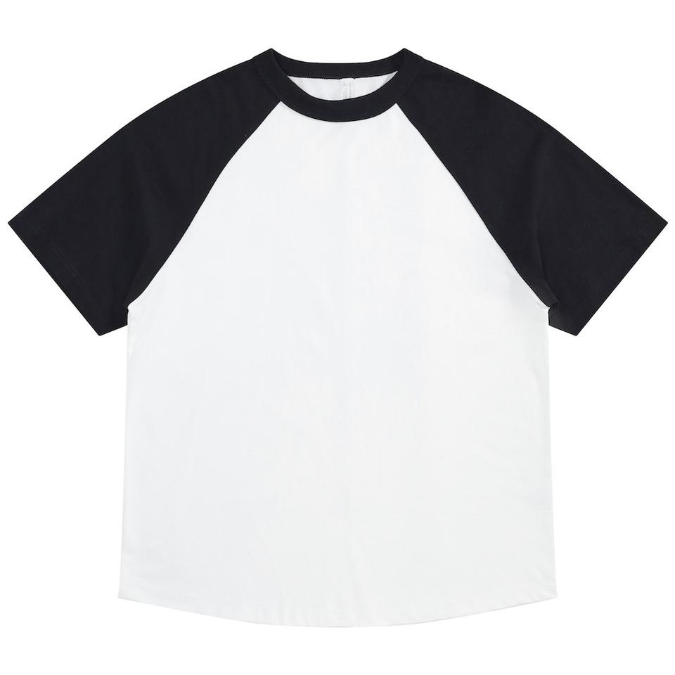 เสื้อยืดแฟชั่นสตรีทแวร์ ผ้าฝ้าย 100% เสื้อยืดต่อผ้าลายกราฟิกนูนแบบกำหนดเอง คอกลม เสื้อยืดผู้ชายเย็บตะเข็บตัดกัน