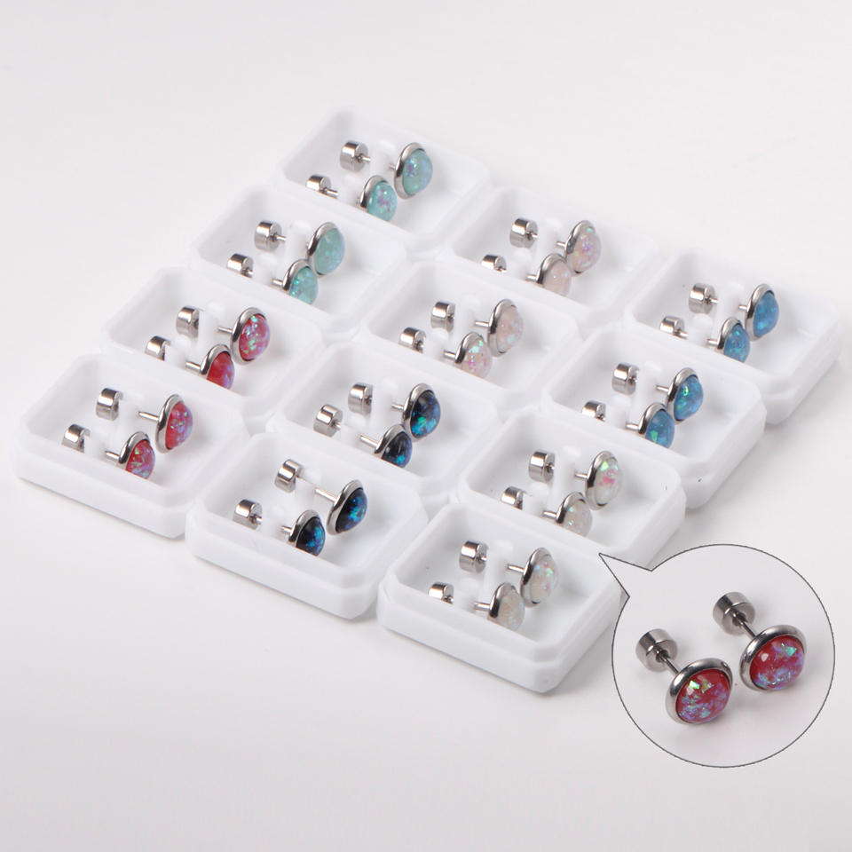 ชุดต่างหูแฟชั่นทรงกลมประดับโอปอลรูปทรงเรขาคณิต ตัวเรือนสแตนเลสสตีลชุบทอง ของขวัญเครื่องประดับ