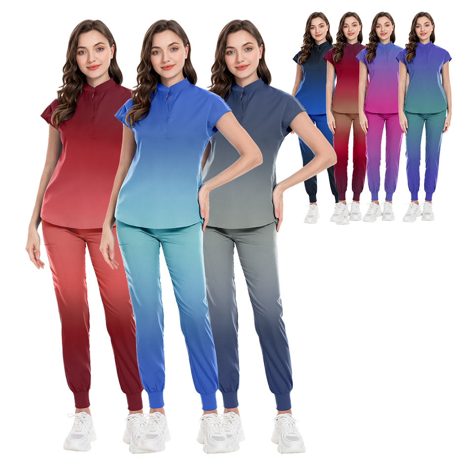 ชุดยูนิฟอร์มสครับสำหรับร้านเสริมสวยแบบไล่ระดับสีสไตล์แฟชั่นชุดสครับพยาบาลทางการแพทย์