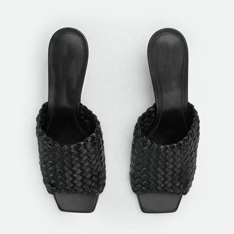 Fashion Style Irregular Metal High Heels Square Toe Braided Upper Sandals Summer Women's Spicy Girls Low-heeled Shoes