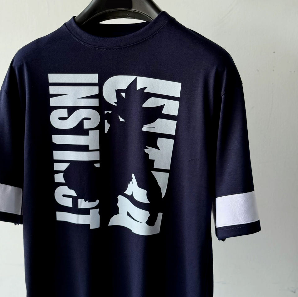 เสื้อยืดแฟชั่นลายกราฟิกโกคูอัลตร้าอินสติงต์ สีดำ สตรีทแวร์ พิมพ์ลายแบบซับลิเมชั่น คอวี ทรงหลวมสำหรับผู้ชาย