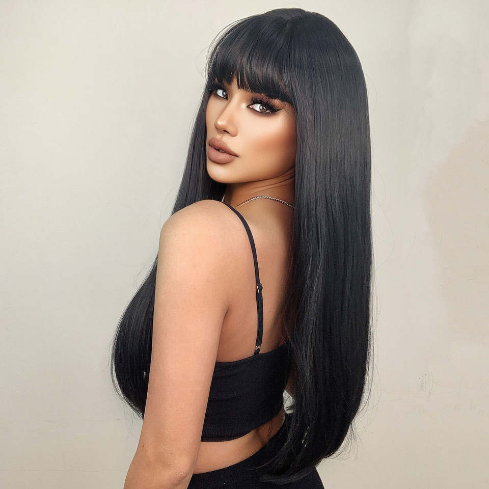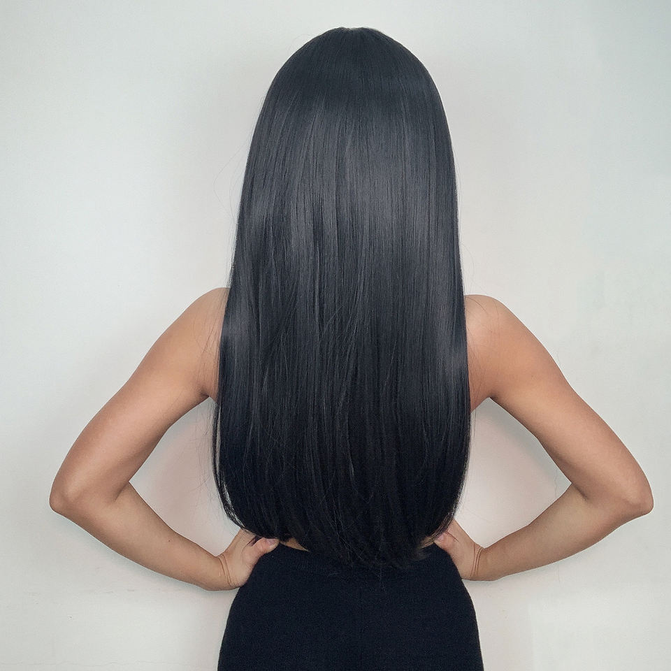 วิกผมสไตล์แฟชั่น28นิ้ว,วิกผมคนเวียดนามยาวผมนุ่มสีดำสำหรับผู้หญิงขาวดำ