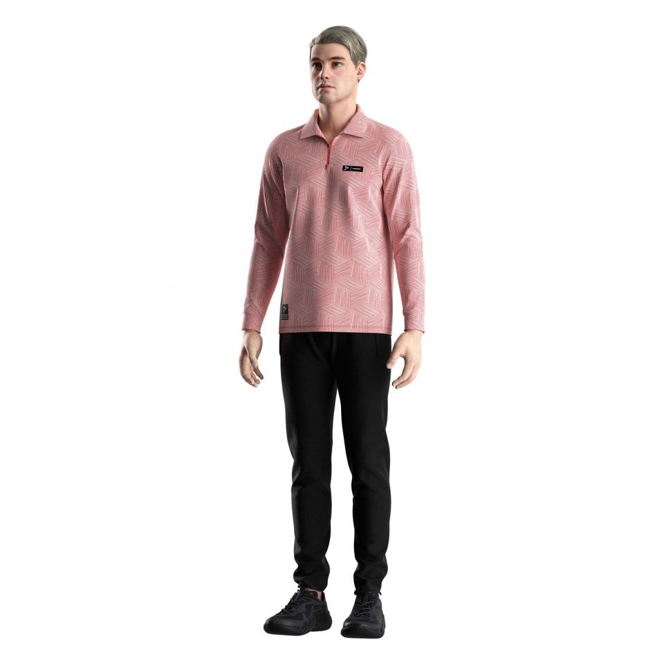 เสื้อโปโลแขนยาวผู้ชาย แฟชั่นซิป 1/4 คอปกตั้ง