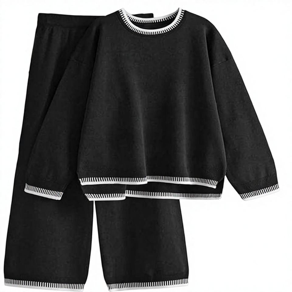ชุดแฟชั่นผู้หญิง ฤดูใบไม้ร่วง ฤดูหนาว ใหม่ ระบายอากาศได้ดี เป็นมิตรกับสิ่งแวดล้อม ยืดหยุ่น สง่างาม เอวยืด ชุดเสื้อสเวตเตอร์ถักขากว้าง