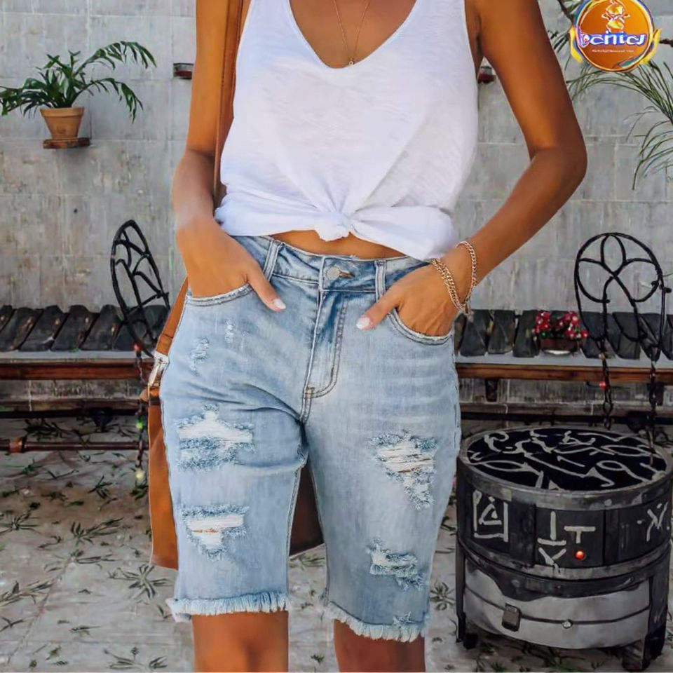 กางเกงยีนส์ขาสั้นแฟชั่นฤดูร้อนสั่งตัดได้ คุณภาพสูง สไตล์ไฮสตรีท ระบายอากาศได้ดี สำหรับผู้หญิงไซส์พลัส