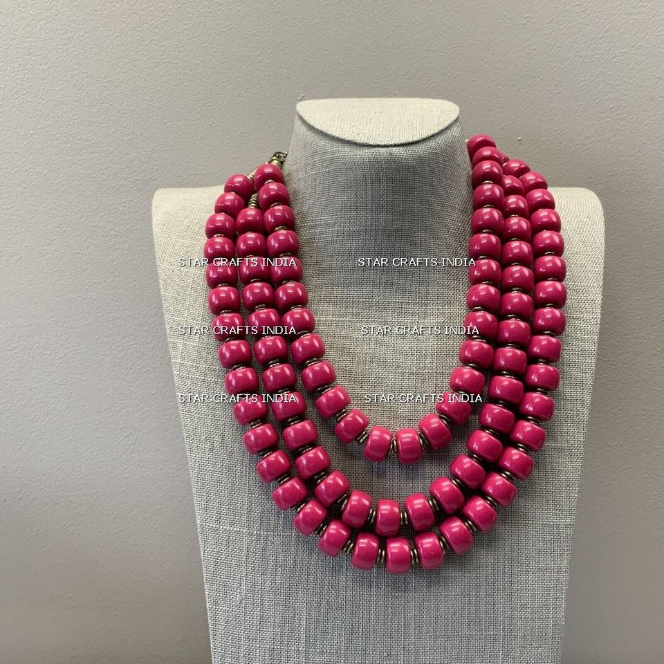 แฟชั่นฤดูร้อนวันหยุดฤดูร้อนผู้หญิงสร้อยคอลูกปัดไม้เรซิ่นสำหรับผู้หญิงแฟชั่นความงามสีดำ2025เครื่องประดับลูกปัดเรซิ่นสีดำ