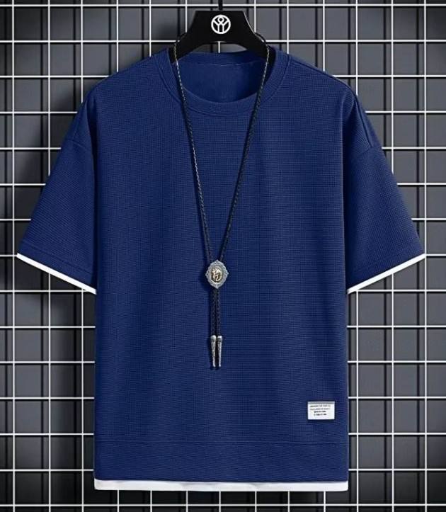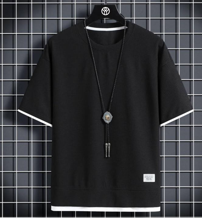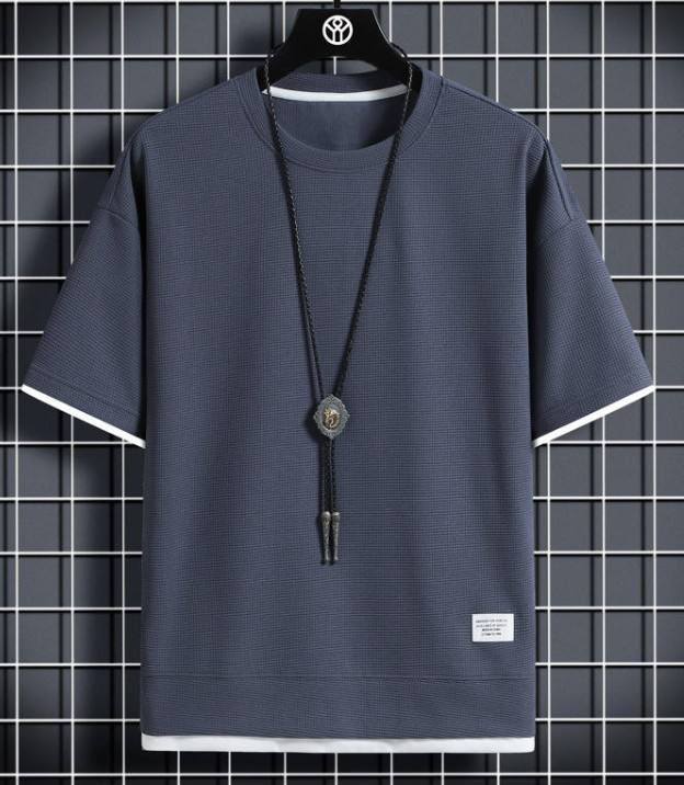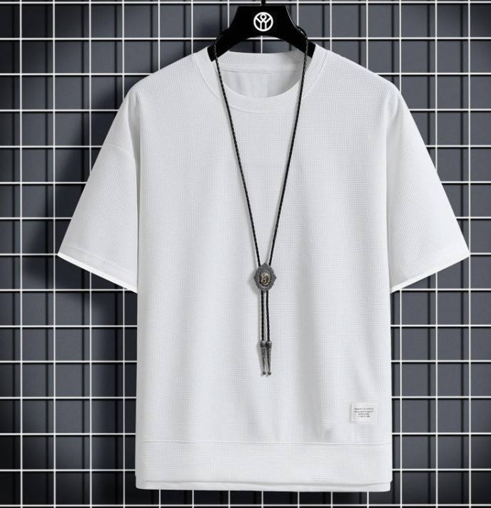 เสื้อยืดแฟชั่นผู้ชายทรงสลิมฟิต ผ้าฝ้าย 100% แขนสั้น คอกลม แห้งเร็ว ระบายอากาศดี ผ้าลายวาฟเฟิล ทันสมัย สำหรับฤดูร้อน