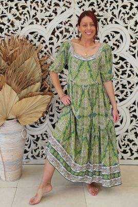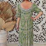 ชุดเดรสแฟชั่นฤดูร้อนพิมพ์ลายดอกไม้คอกลมผ้าเรยอนใส่สบายชุดเดรสชายหาดหรูหราสไตล์โบฮีเมียน