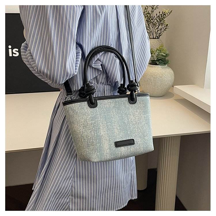 กระเป๋าทรงถังแบบมีหูหิ้วสำหรับผู้หญิงกระเป๋าทรงคาวบอยสะพายไหล่กระเป๋าใบเล็ก