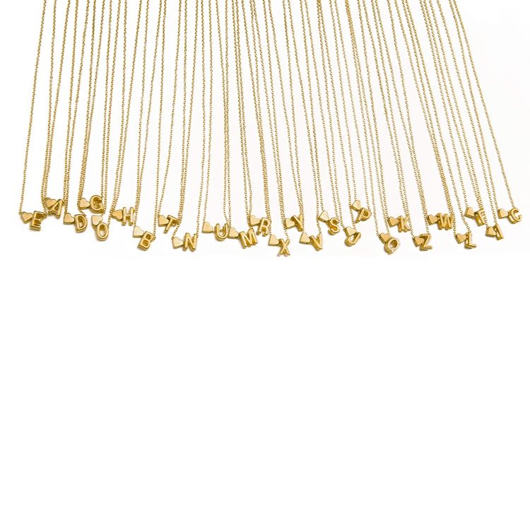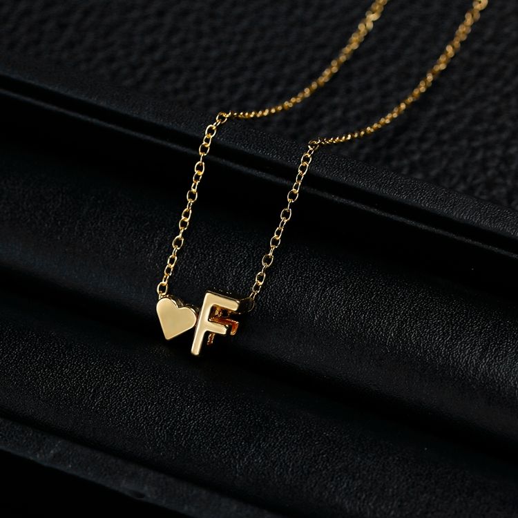 สร้อยคอชุบทองบางเฉียบ ดีไซน์จี้รูปหัวใจและตัวอักษร 26 ตัว สำหรับผู้หญิง