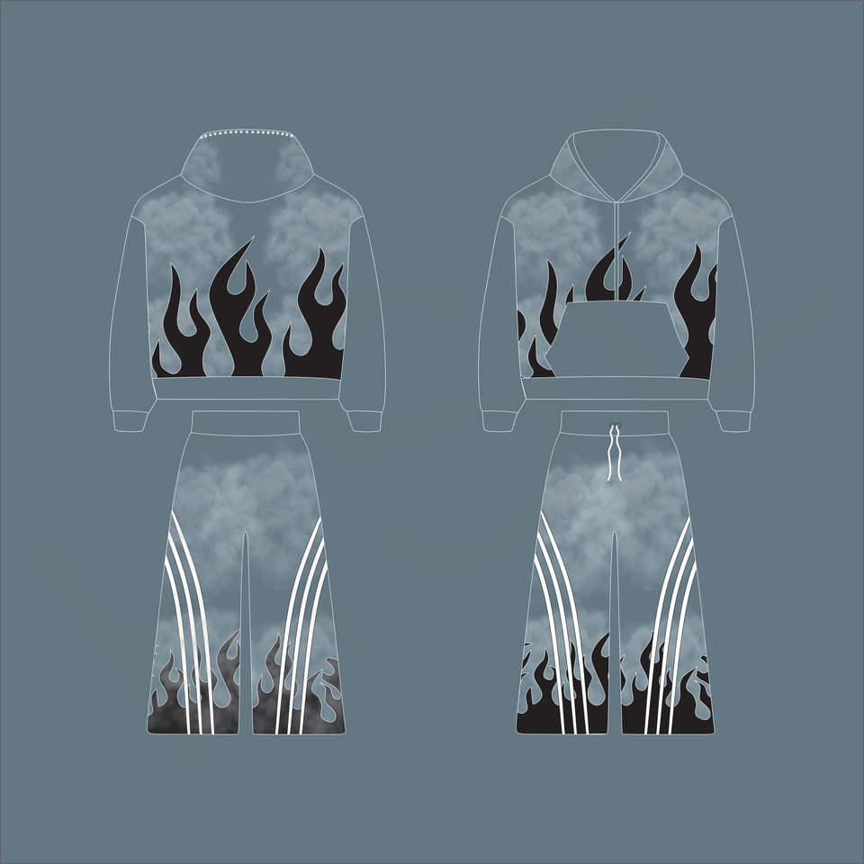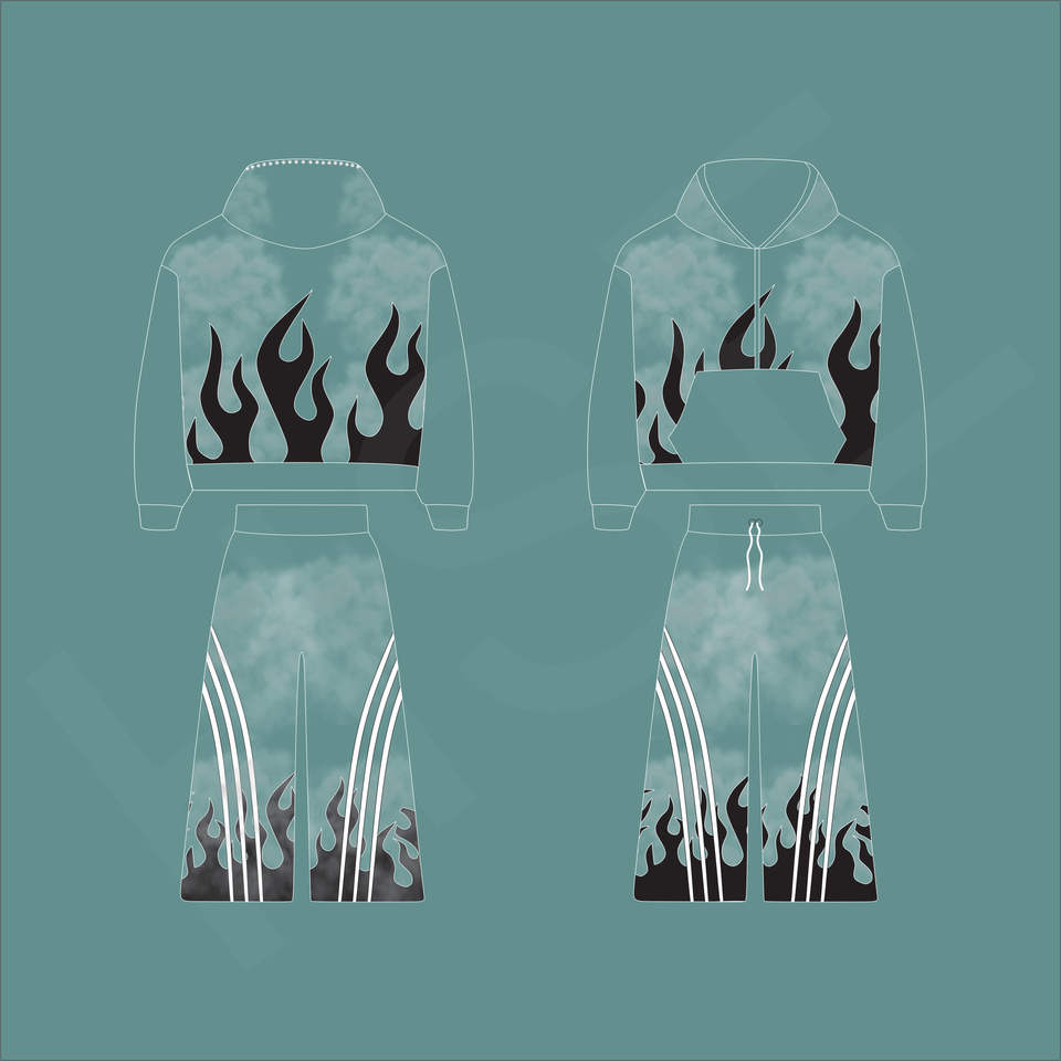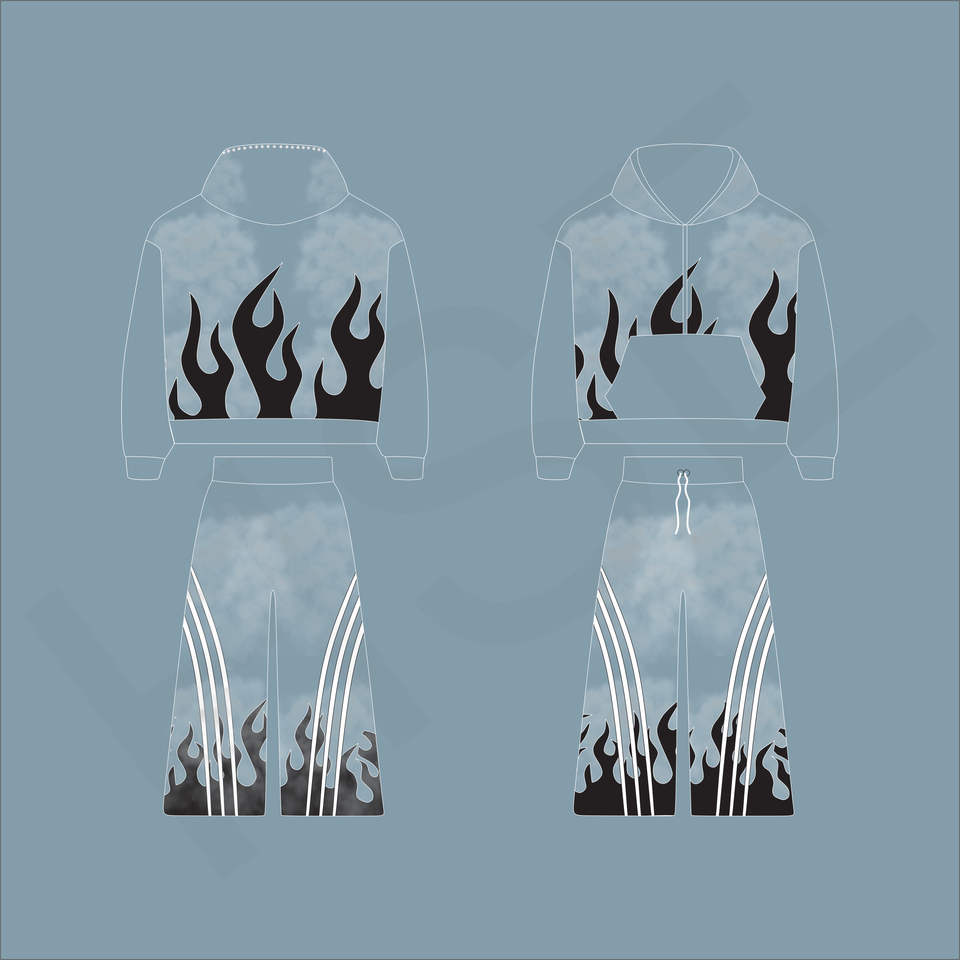 ชุดวอร์มลายพิมพ์ไท-ได แฟชั่นลายเปลวไฟ | ชุดสองชิ้นโลโก้แบบกำหนดเอง
