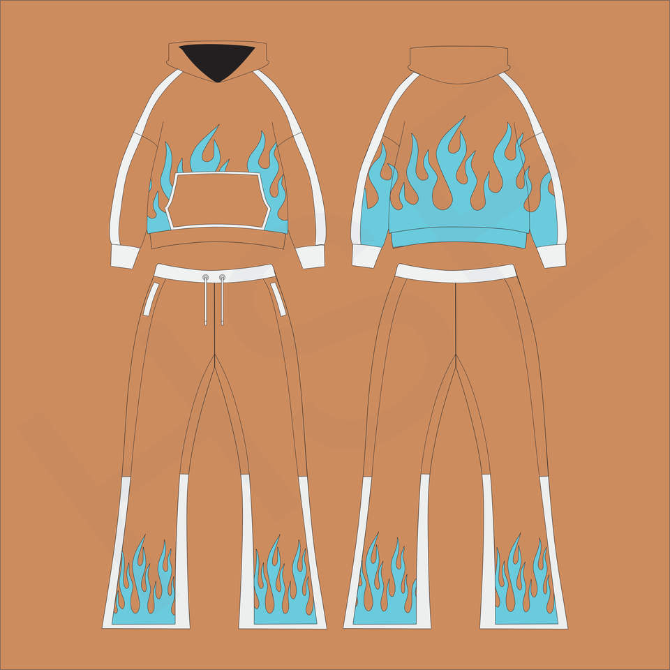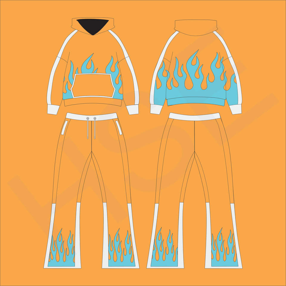 ชุดวอร์มลายพิมพ์ไท-ได แฟชั่นลายเปลวไฟ | ชุดสองชิ้นโลโก้แบบกำหนดเอง