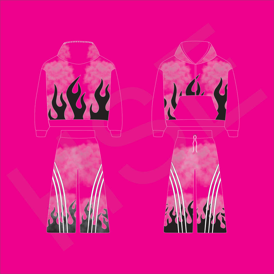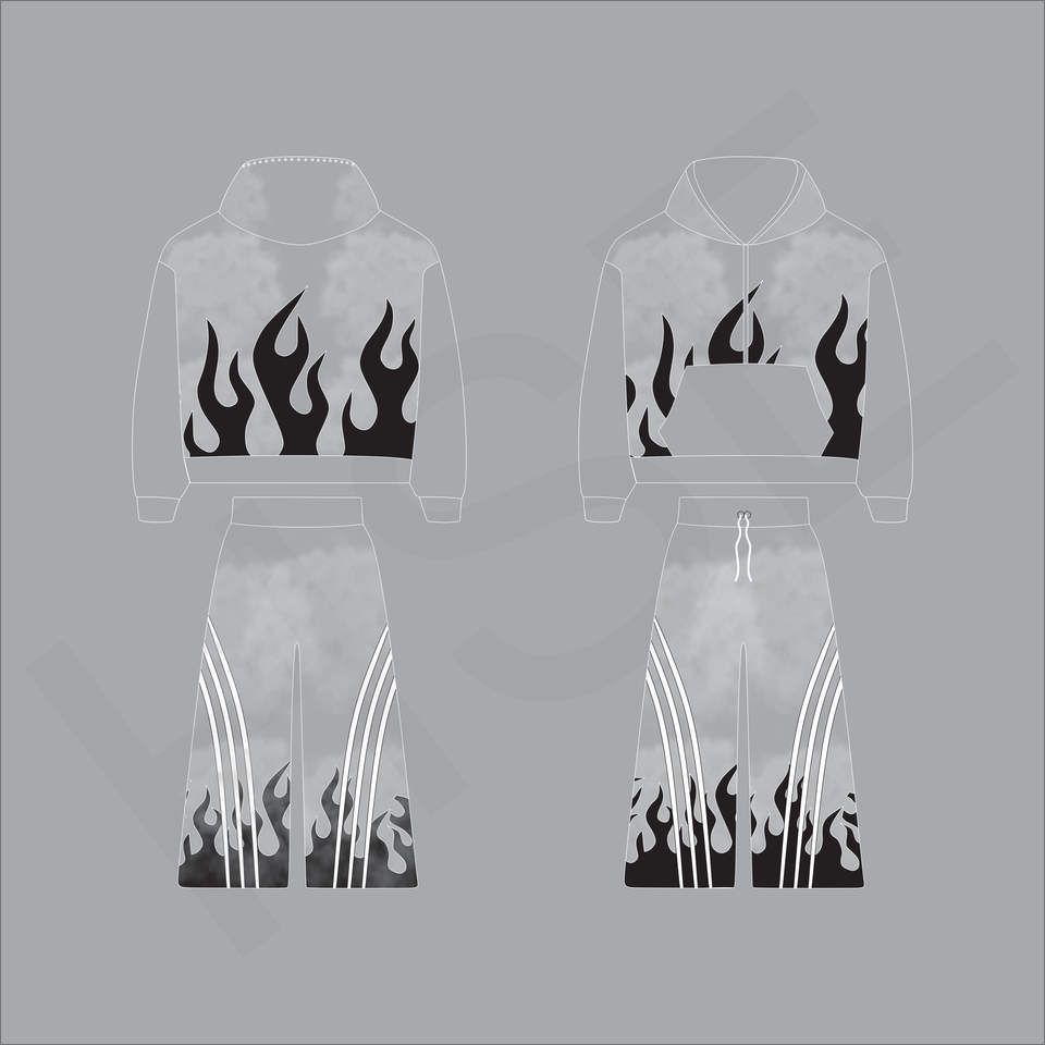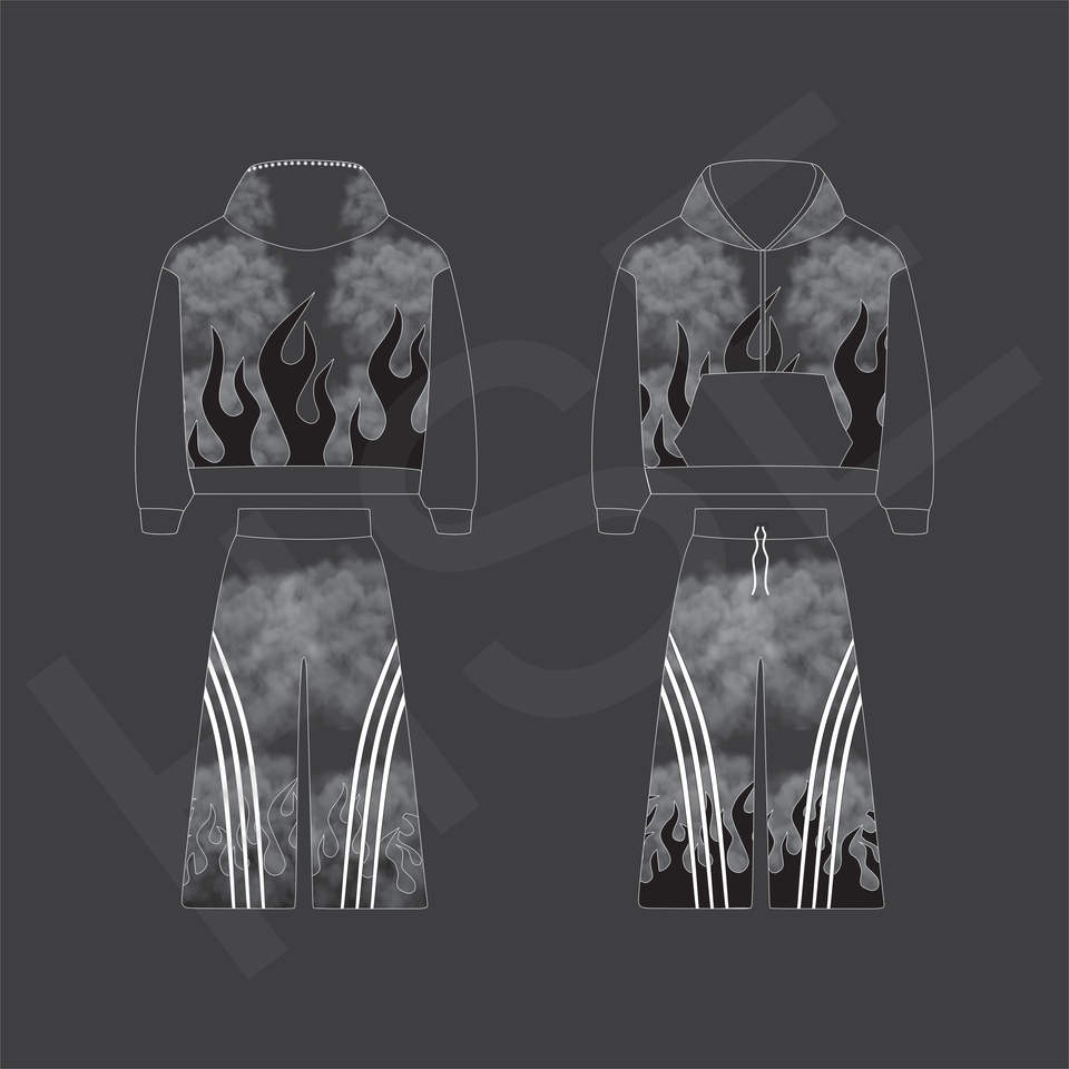 ชุดวอร์มลายพิมพ์ไท-ได แฟชั่นลายเปลวไฟ | ชุดสองชิ้นโลโก้แบบกำหนดเอง