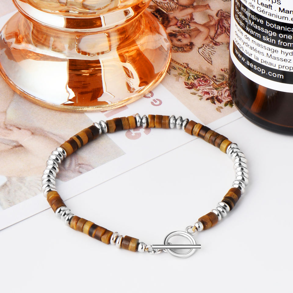Trendy Silver OT Clasp Beaded Bracelet for Women Fashionable Tigers Eye Crystal with Star Pattern Great for Parties Couples