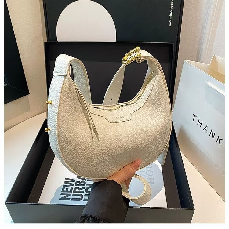 กระเป๋าแฟชั่นมาแรงปี 2024 กระเป๋าหนัง PU ใหม่ กระเป๋าถือผู้หญิง ทรงครึ่งวงกลม กระเป๋าสะพายไหล่