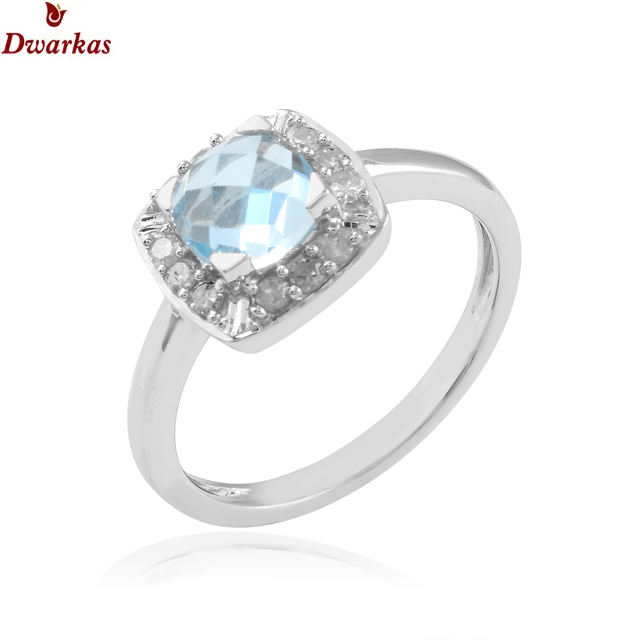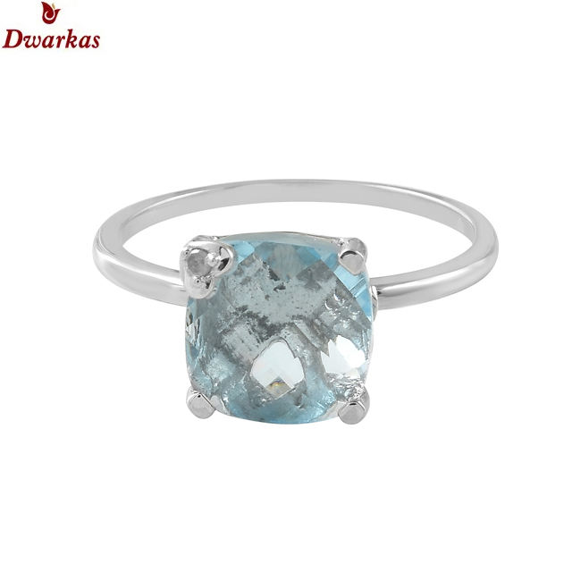 แฟชั่นอินเทรนด์คลาสสิก925สเตอริงเงินธรรมชาติสีฟ้าบุษราคัมสีฟ้าแหวนพลอยหลายสีขาวเครื่องประดับงานปาร์ตี้