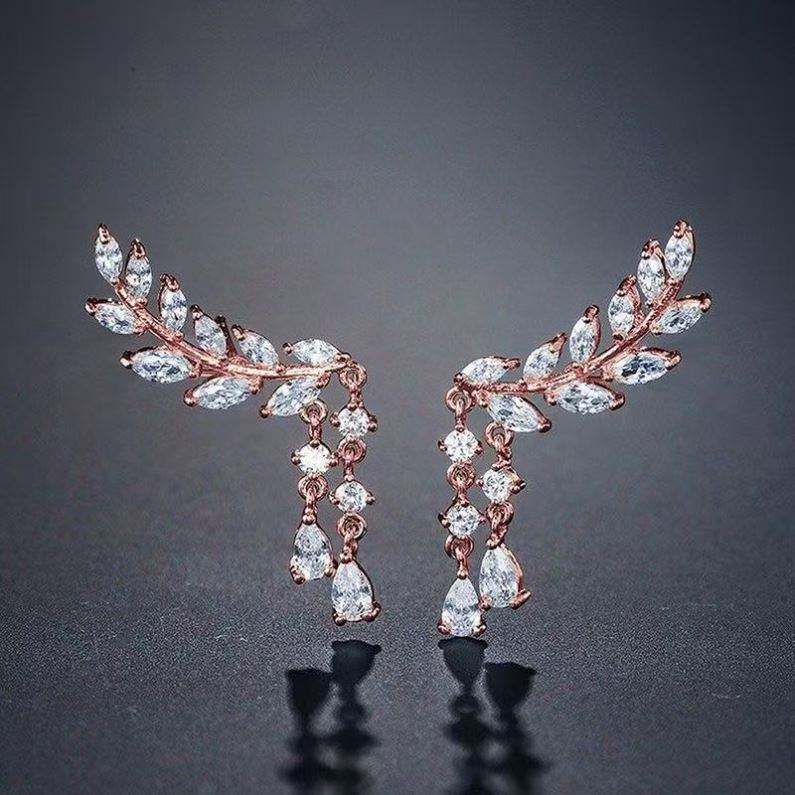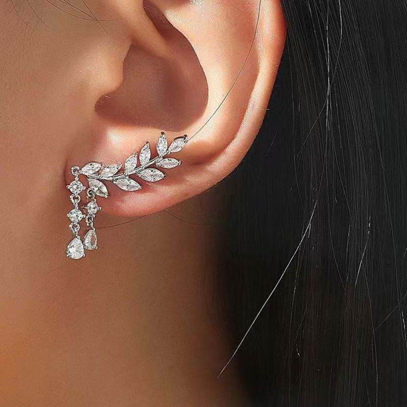 ต่างหูแฟชั่นทันสมัยประดับใบไม้และเพชรซิคอน ชุบทอง 10K พร้อมพู่ห้อย เหมาะสำหรับเป็นของขวัญในโอกาสวันครบรอบหรืองานปาร์ตี้