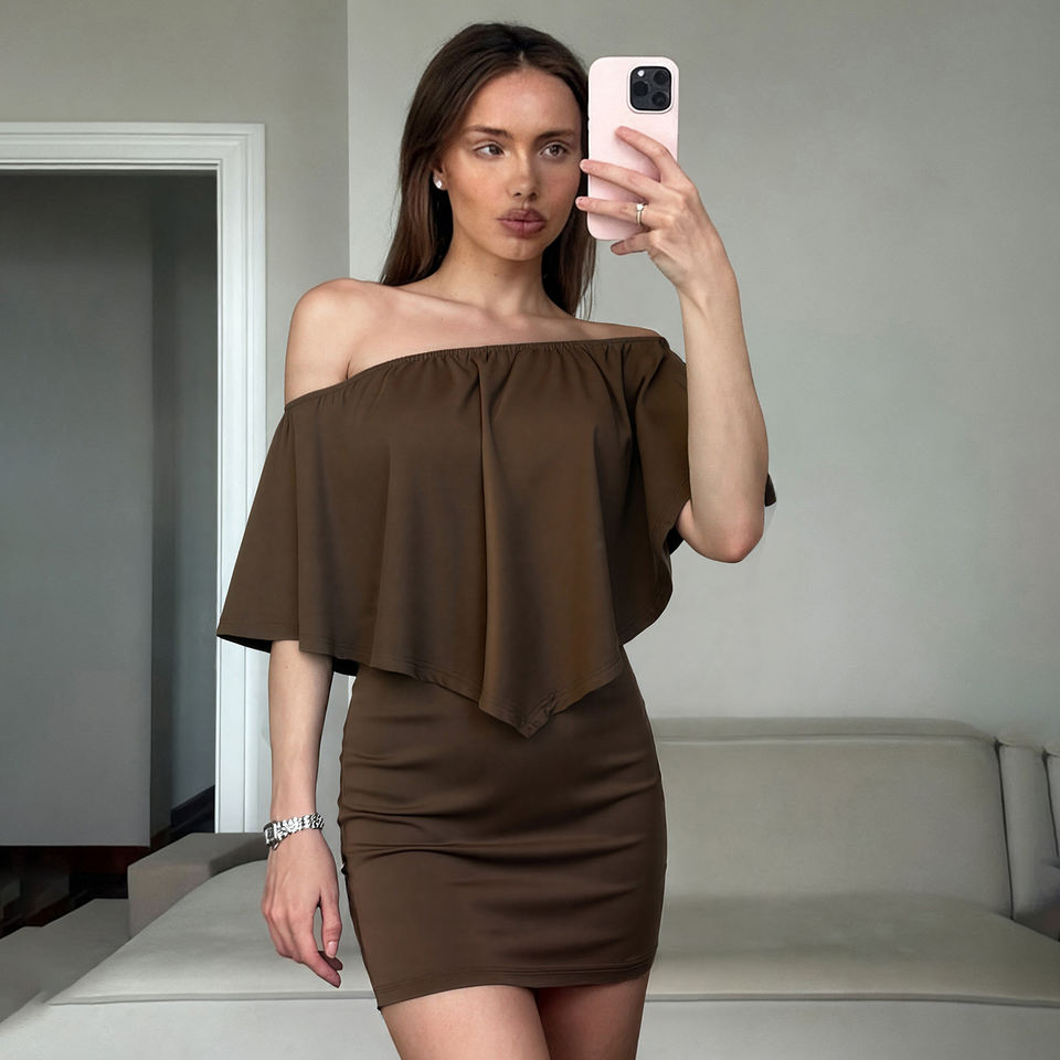 เดรสแฟชั่นทันสมัยแบบไร้สายรัดไหล่ ทรงเข้ารูป ดีไซน์ระบายช่วงตัวแบบเรขาคณิตไม่สมมาตร