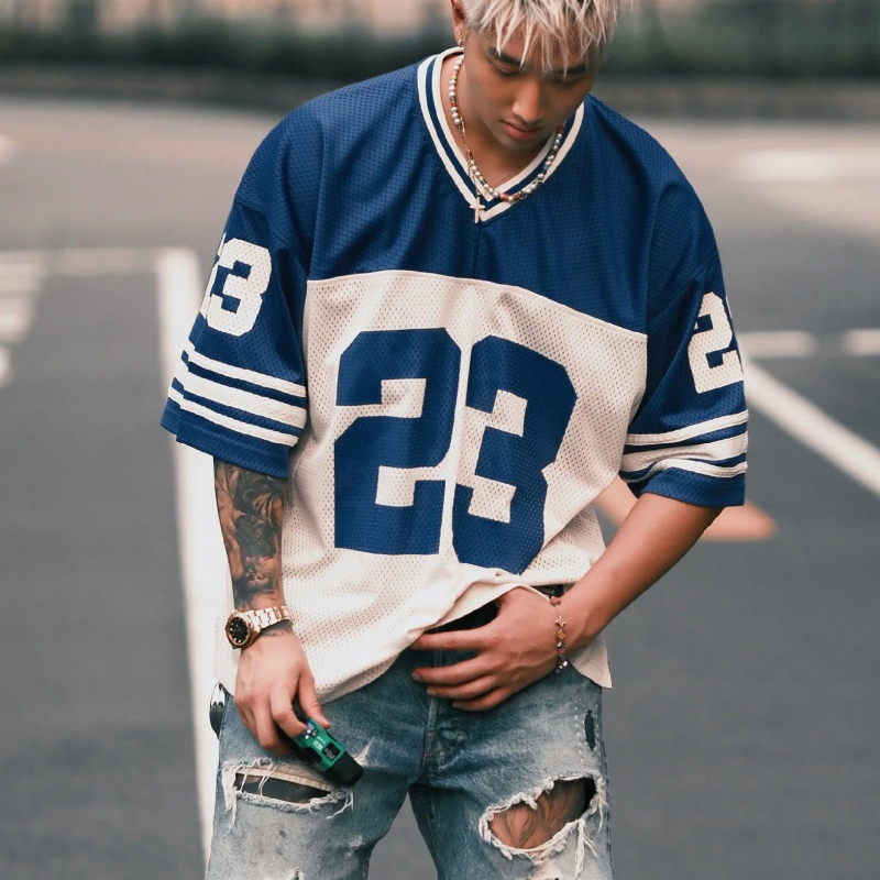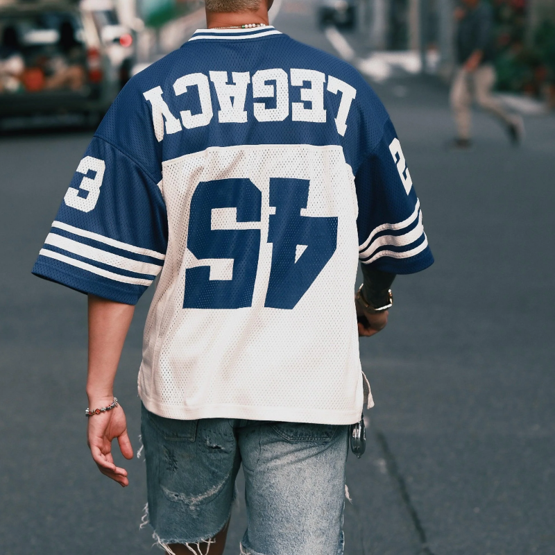 เสื้อฟุตบอลอเมริกันสไตล์เรโทรสตรีทแวร์สุดเทรนดี้ แบบครอป แบบสั่งทำพิเศษ ผ้าตาข่ายเรียบ เสื้อยืดเจอร์ซีย์ฟุตบอลอเมริกัน