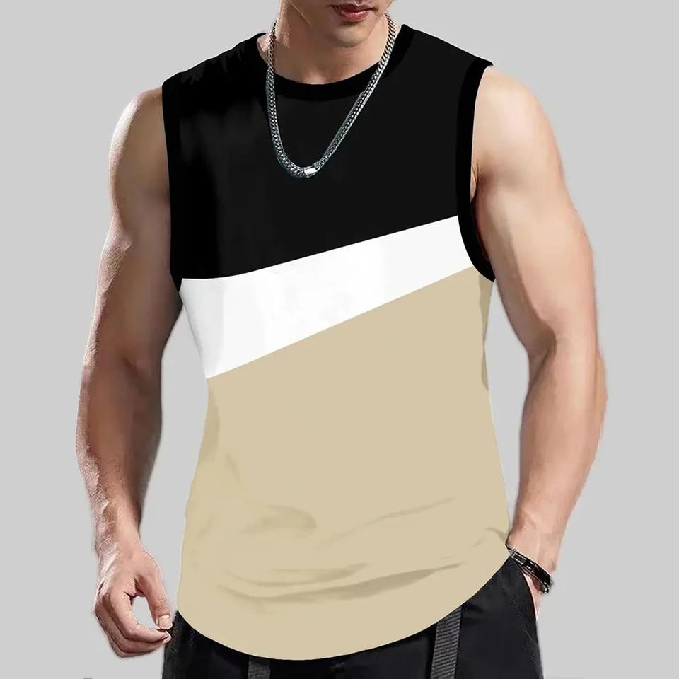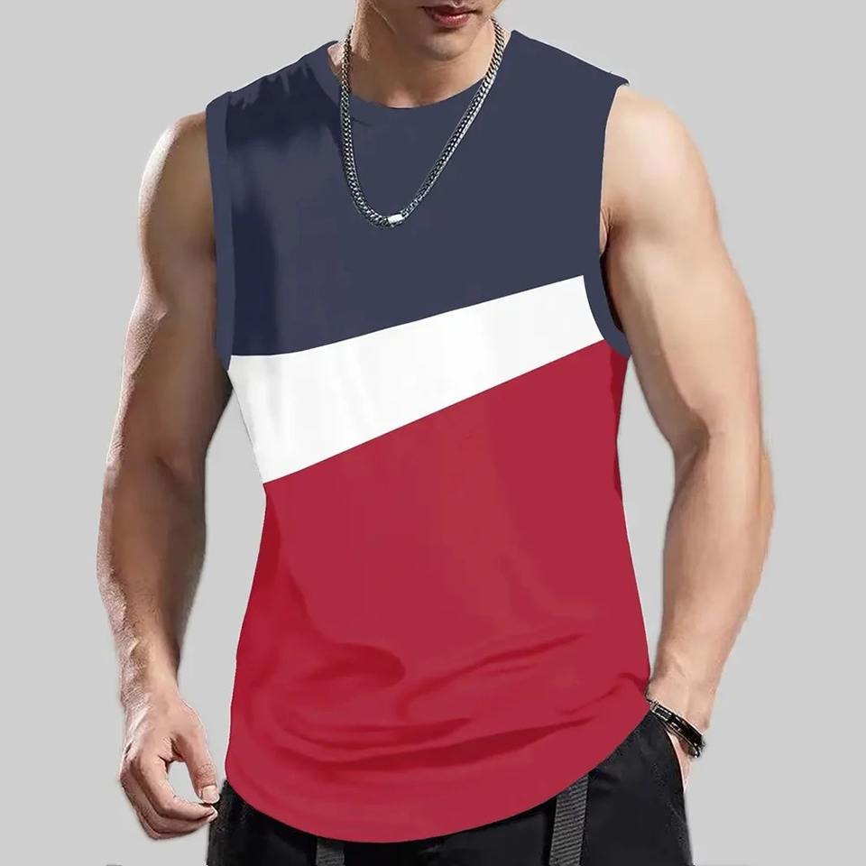 เสื้อเชิ๊ตแขนกุดแฟชั่นสำหรับผู้ชาย, เสื้อยืดแขนกุดพิมพ์ลายเสื้อยืดคอกลมทรงหลวมลำลองสำหรับใส่ไปยิมในฤดูร้อน