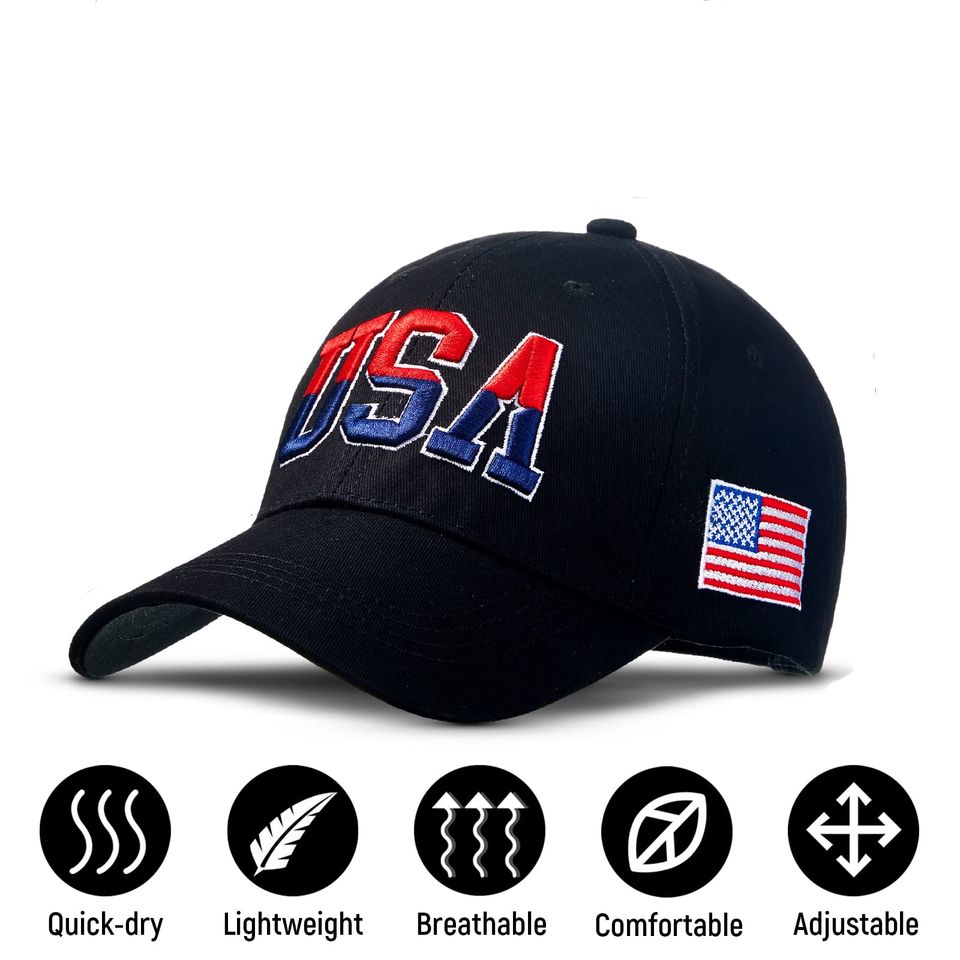 หมวกเบสบอลกันแดดแฟชั่น USA หมวกผ้าฝ้ายปรับขนาดได้หมวกปักลายธงชาติอเมริกันอเมริกันสำหรับทุกเพศ