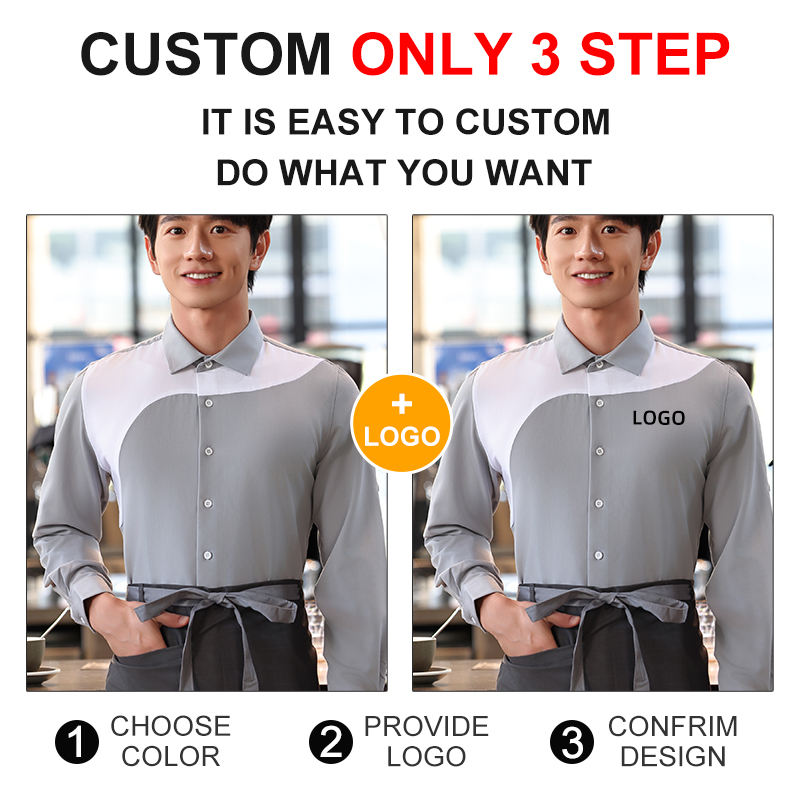 เสื้อเชิ้ตทำงานผ้าทวิลผสมโพลีเอสเตอร์/คอตตอน สวมใส่สบาย สำหรับพนักงานร้านอาหาร แบบมืออาชีพ แขนยาว รับสกรีนโลโก้ แฟชั่นยูนิเซ็กซ์