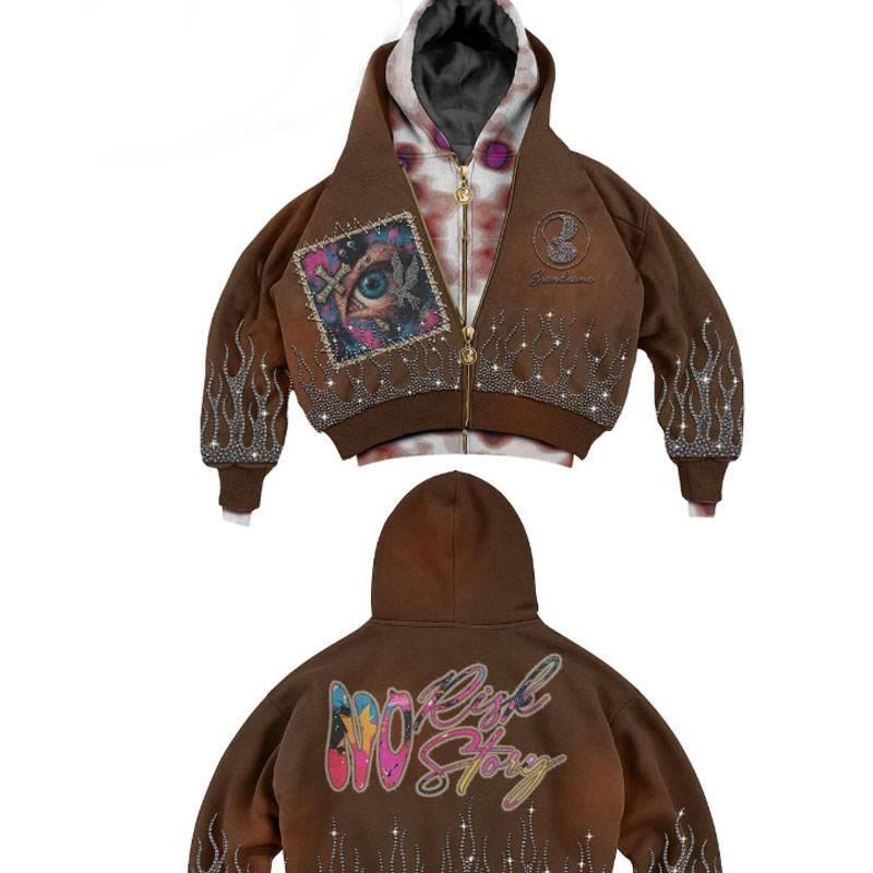 เสื้อฮู้ดแฟชั่นยูนิเซ็กซ์ ประดับคริสตัลวิบวับ สไตล์ฮิปฮอป สตรีทแวร์ ผ้าฝ้าย 100% สำหรับฤดูหนาว ดีไซน์พรีเมียม