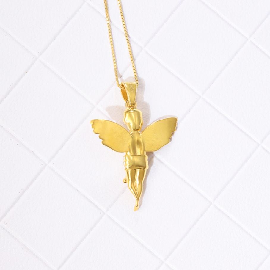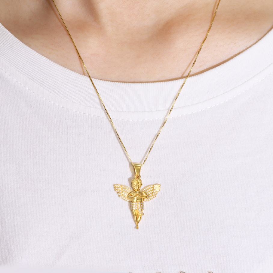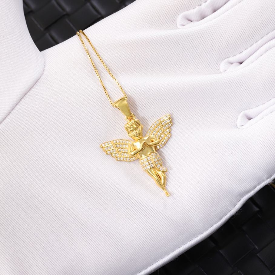 จี้รูปนางฟ้าประดับเพชรโมอิสซาไนต์ VVS แฟชั่น สร้อยคอเงินแท้ 925 ชุบทอง ประดับเพชรโมอิสซาไนต์แบบ Iced Out